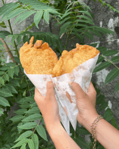 Panzerotti: Klassisch / Mortadella, Pistazien, Mozzarella / Lachs, Pistazien, Mozzarella / Dubari (Pistazien, Sesam, Schokolade, Banane)